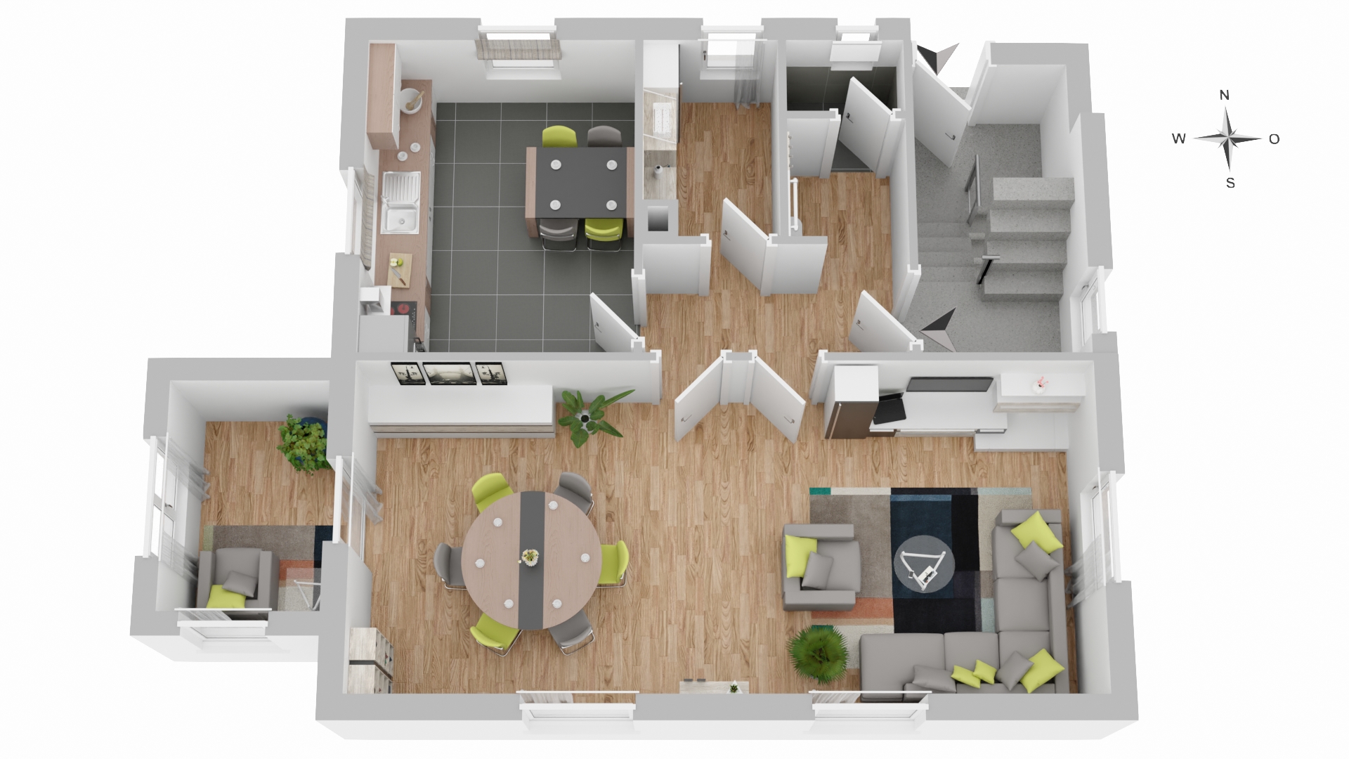 Neben der Nutzung als klassisches Einfamilienhaus besteht grundsätzlich auch die Möglichkeit, zwei separate Wohneinheiten zu realisieren – ein interessanter Aspekt für Mehrgenerationenwohnen oder eine Kombination aus Eigennutzung und Vermietung.